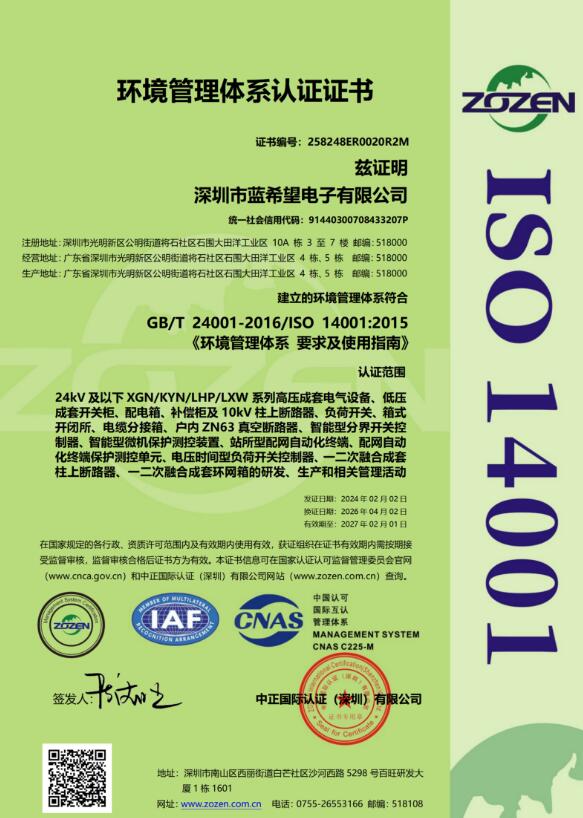 深圳市蓝希望电子有限公司(简称蓝希望)是一家专业从事研发、生产、销售高低压电力自动化成套设备的国家高新技术企业。公司成立于1998年,注册资金37000万元,总部位于深圳市光明区,下设1个子公司(南京蓝园精瑞电气有限公司)及1家分支机构(深圳市蓝希望电子有限公司电气设备制造厂)。公司主要生产智能环保型环网柜、电缆分支箱、柱上开关、高低压开关柜、配电自动化终端等产品,广泛应用于智能电网、电厂、交通、工矿企业、新能源等领域....更多>>