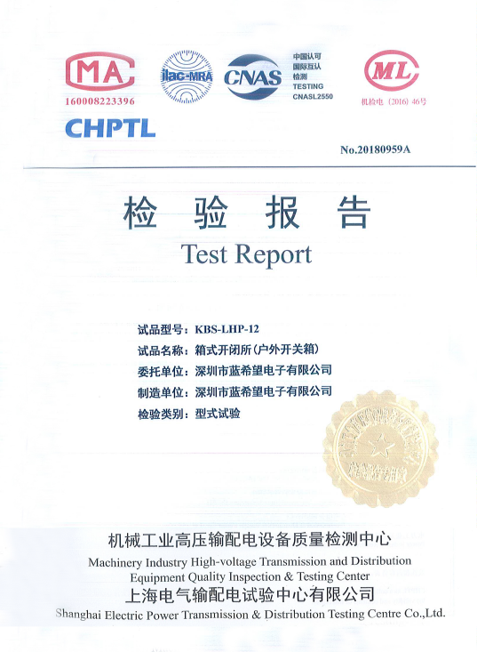 • 产品类别: 荣誉资质 试验报告